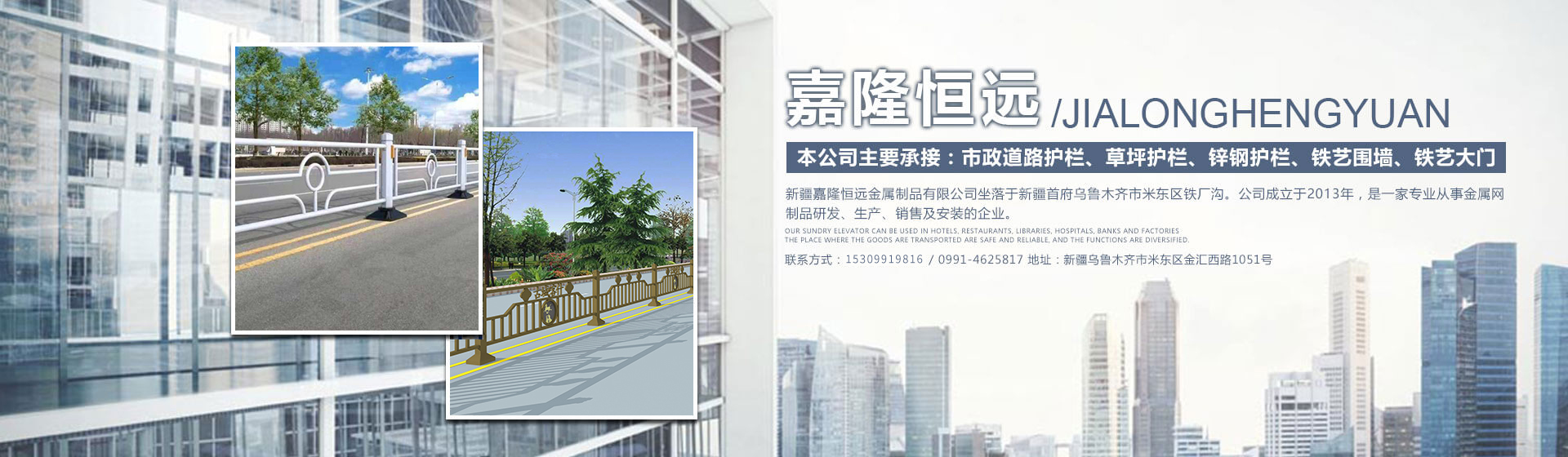 新疆嘉隆恒遠金屬制品有限公司坐落于新疆首府烏魯木齊市米東區(qū)鐵廠溝。公司成立于2013年,是一家專業(yè)從事金屬網(wǎng)制品研發(fā)、生產(chǎn)、銷售及安裝的企業(yè)。 本公司主要承接 市政道路護欄、草坪護欄、鋅鋼護欄、鐵藝圍墻、鐵藝大門。 公司購進一批新的生產(chǎn)設(shè)備,生產(chǎn)能力、廠區(qū)環(huán)境得到大步提升、我公司將以全新的面貌、以更優(yōu)質(zhì)的產(chǎn)品、更高的效力、為你提供更全面的服務(wù)。 公司承諾將以齊全的品種、優(yōu)質(zhì)的產(chǎn)品、良好的服務(wù)、超值的價位竭誠為廣大新老客戶服務(wù)。 隨著西部大開發(fā)的加快,我公司將依托新疆有利的資源,打造出新疆生產(chǎn)規(guī)模大、品種全的生產(chǎn)基地,迎接更美好、更輝煌的明天。 歡迎來電咨詢,實地考察,一次合作,終身是友。